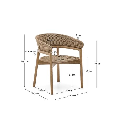 The Arinella collection stands for the combination of rustic and modern. Each piece combines the nobility of solid acacia wood with a brushed finish that highlights the natural color nuances and unique grain, making each piece one of a kind. The UV-resistant, hand-woven rope seat and backrest provide a durable, contemporary look that is suitable for any type of environment.